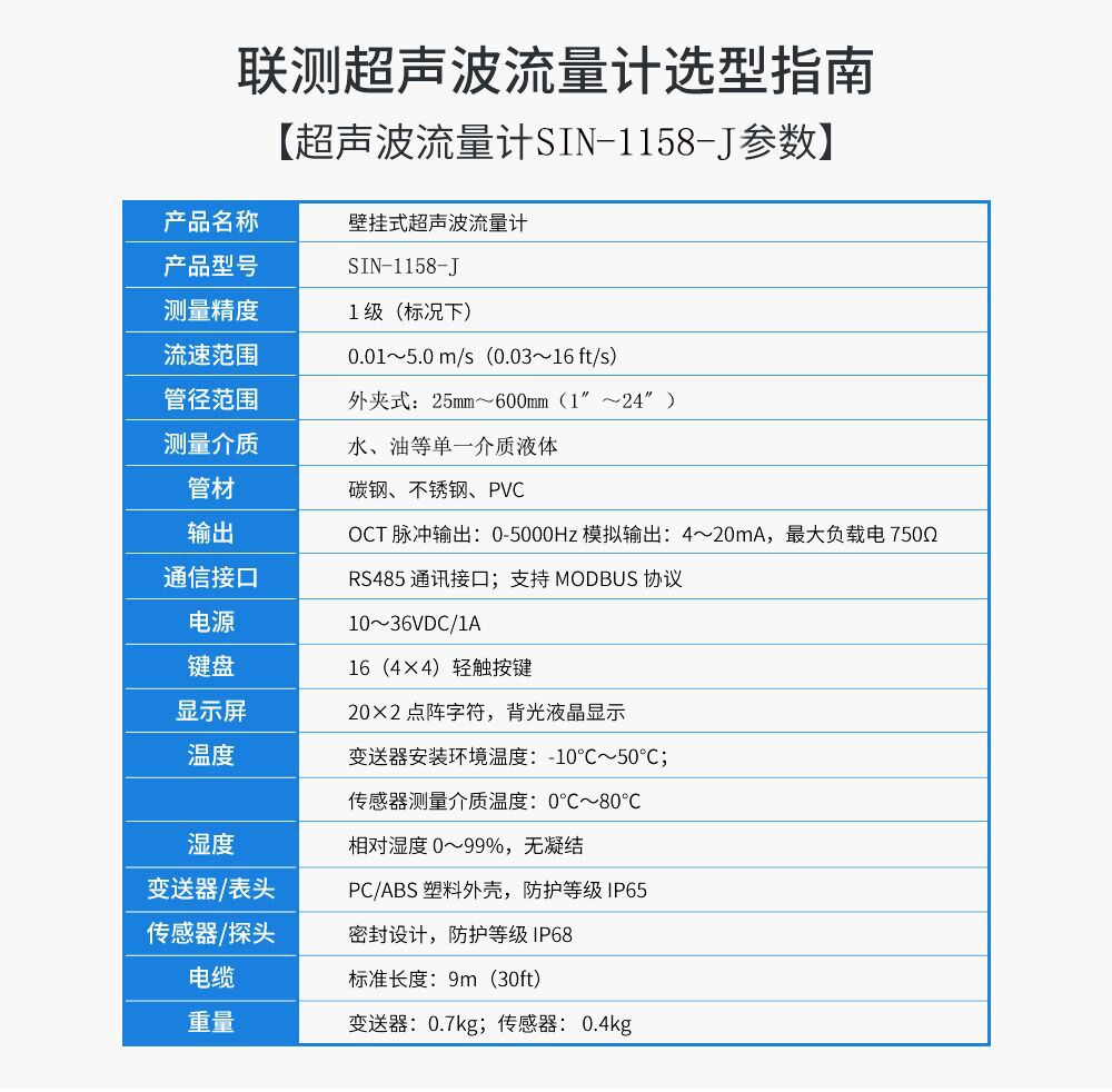 • 聯測_SIN-1158-J 壁掛式超聲波流量計 DN25-DN600_