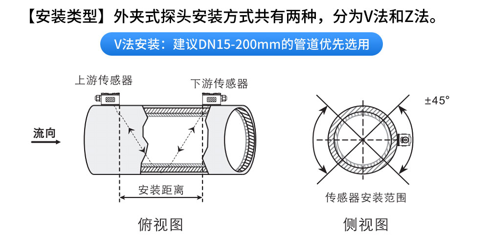 外夾壁掛式超聲波流量計利用了低電壓,多脈沖時差原理,采用高精度和超穩定的雙平衡信號差分發射、差分接收數字檢測技術來測量順流和逆流方向的聲波傳輸時間,根據時差計算出流速。具有穩定性好、零點漂移小、測量精度高,量程比寬抗干擾性強等特點。CN1