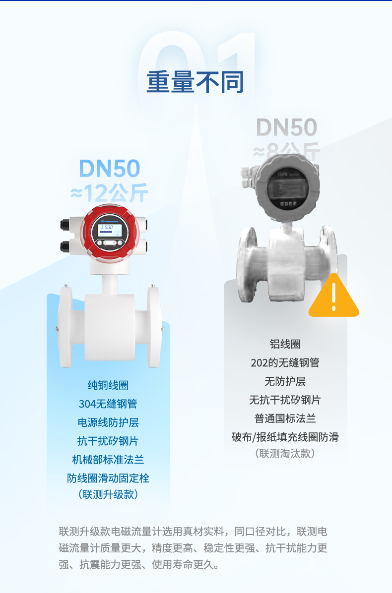聯測擁有國內少有的全自動標定裝置,累積服務客戶約50萬位。適用于化工助劑、海綿城市、給水排水、水利灌溉、水處理、污水處理(環保污水控制、化工污水、電鍍污水)、造紙漿液(紙漿)、泥漿、醫藥原料、食品等工農業的生產過程流量測量和控制,標配485通訊功能。