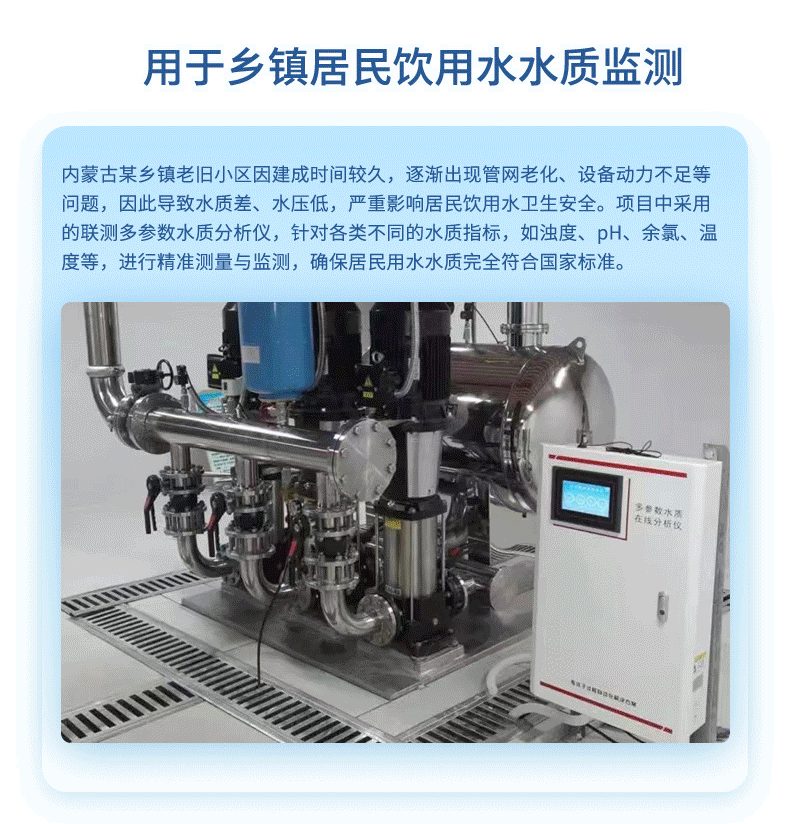 多參數(shù)水質(zhì)在線分析儀是本公司自主研發(fā)制造的新一代飲用水水質(zhì)監(jiān)測(cè)設(shè)備,該設(shè)備可廣泛用于城市或村鎮(zhèn)自來水廠、自來水輸水管網(wǎng)、自來水二次供水、用戶末梢、室內(nèi)游泳池、大型凈水設(shè)備和直飲水等水質(zhì)在線監(jiān)測(cè),是水廠生產(chǎn)過程控制、水利水務(wù)管理、衛(wèi)生監(jiān)督等領(lǐng)域必不可少的在線分析設(shè)備。CN3