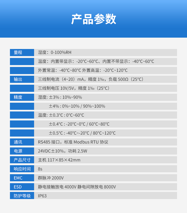 首頁 > 紅外溫度傳感器 → 聯測_壁掛式溫濕度傳感器變送器 (4-20)mA RS485_溫濕度計帶顯示_