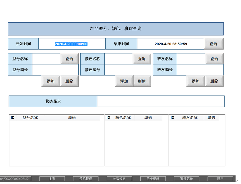 條碼管理 條碼中包含了5種有類型的數據,對于其中較為穩定的部分,比如,車型,顏色,班次進行維護。 A17769079007H46B1706200001,這是一個標準條碼,其中A1776907900表示車型信息,7H46表示顏色編碼,B代表班次,170520代表日期,后面00001代表產品編號。 參數設置 設置壓力傳感器檢測的最小壓力值,壓力超限值,按壓持續時間等等。 |