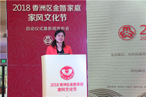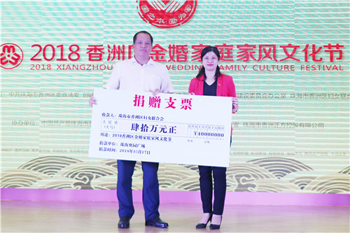 (2018年10月17日——珠海)10月17日,“國(guó)之本 愛(ài)為家”2018珠海香洲區(qū)首屆家庭家風(fēng)文化節(jié)在珠海奧園廣場(chǎng)啟動(dòng)。珠海市委政法委專委姜鐵鈞,香洲區(qū)委副書記、政法委書記劉繼漢,區(qū)委常委、組織部長(zhǎng)陳靜,副區(qū)長(zhǎng)、公安分局局長(zhǎng)、區(qū)平安辦主任鄭木舜,區(qū)婦聯(lián)主席黃芳,奧園集團(tuán)黨委副書記、紀(jì)委書記林莉等領(lǐng)導(dǎo)及來(lái)自拱北、前山等各鎮(zhèn)街道8對(duì)金婚伉儷代表,社會(huì)各界人士及媒體記者共計(jì)100余人出席。儀式上,奧園向區(qū)婦聯(lián)捐贈(zèng)40萬(wàn)元,以弘揚(yáng)家庭美德,傳播正能量。