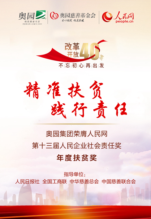 奧園集團(tuán)榮獲第十三屆人民企業(yè)社會(huì)責(zé)任獎(jiǎng)“年度扶貧獎(jiǎng)”