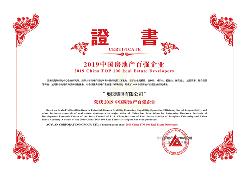 奧園集團(tuán)獲評(píng)為“2019中國(guó)房地產(chǎn)百?gòu)?qiáng)企業(yè)”第26名