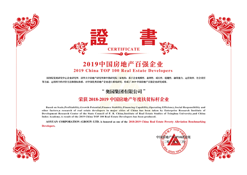 2019中國(guó)房地產(chǎn)年度扶貧標(biāo)桿企業(yè)第6名