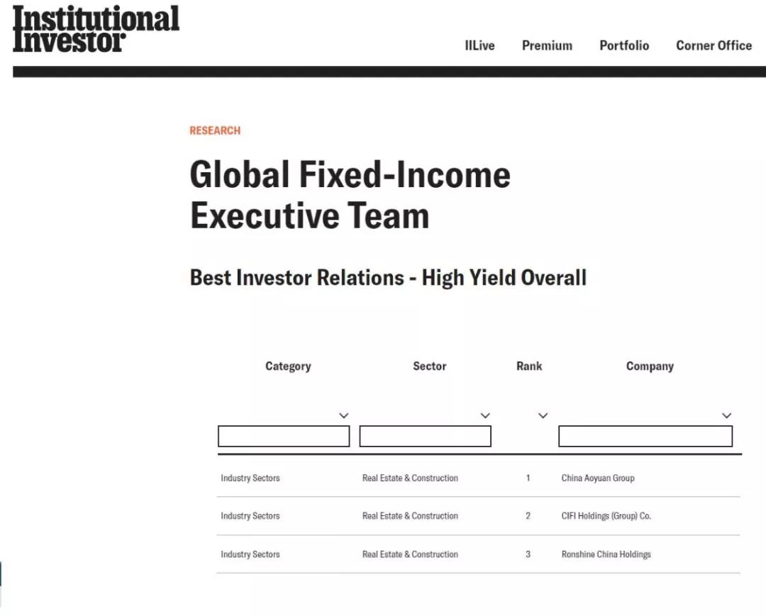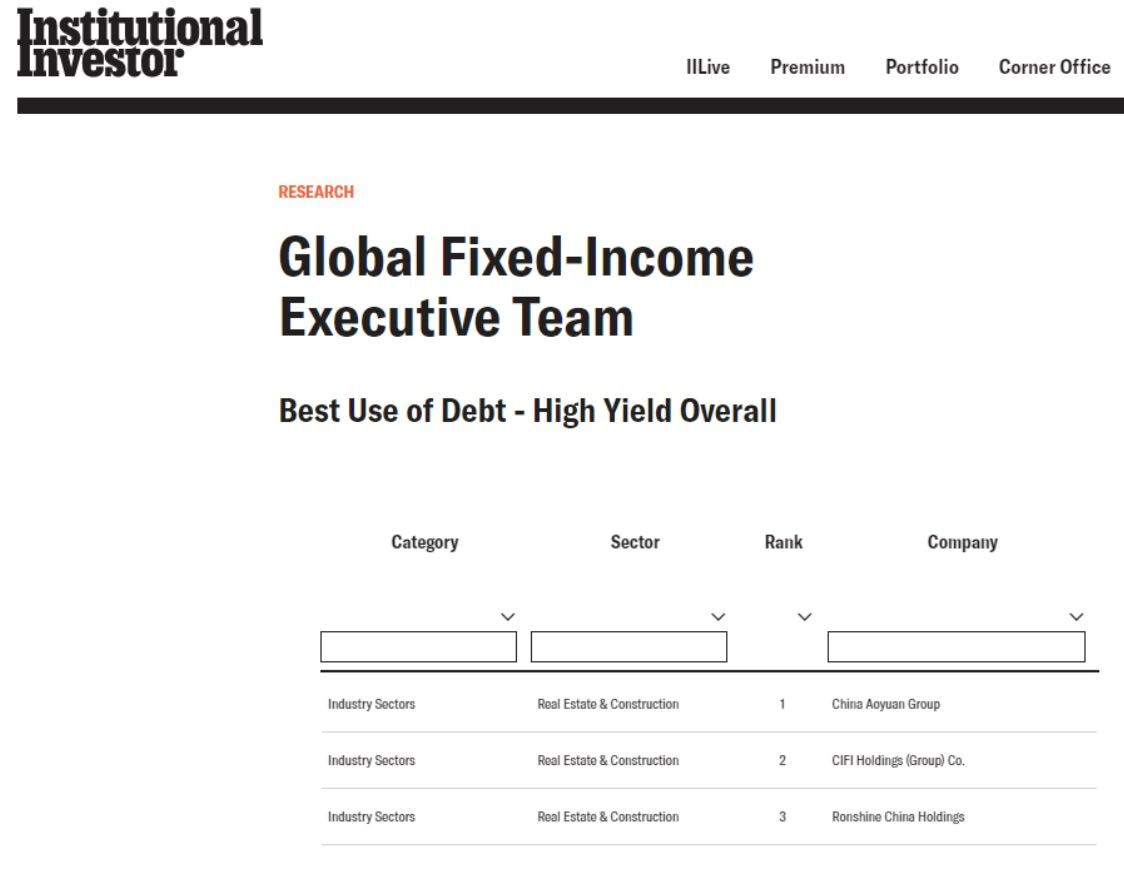 中國奧園榮膺《機(jī)構(gòu)投資者》“2019全球最佳固定收益管理團(tuán)隊(duì)”
