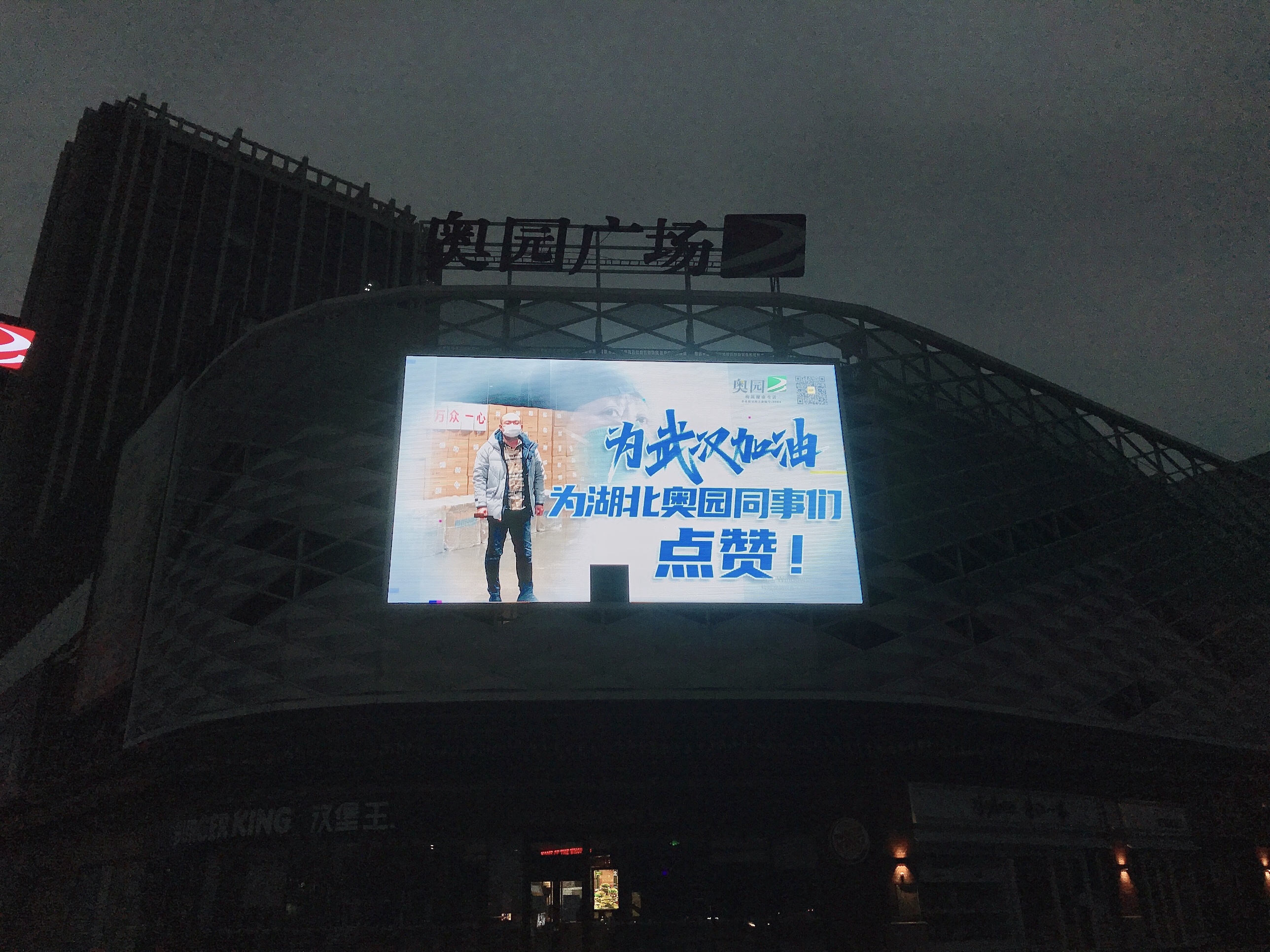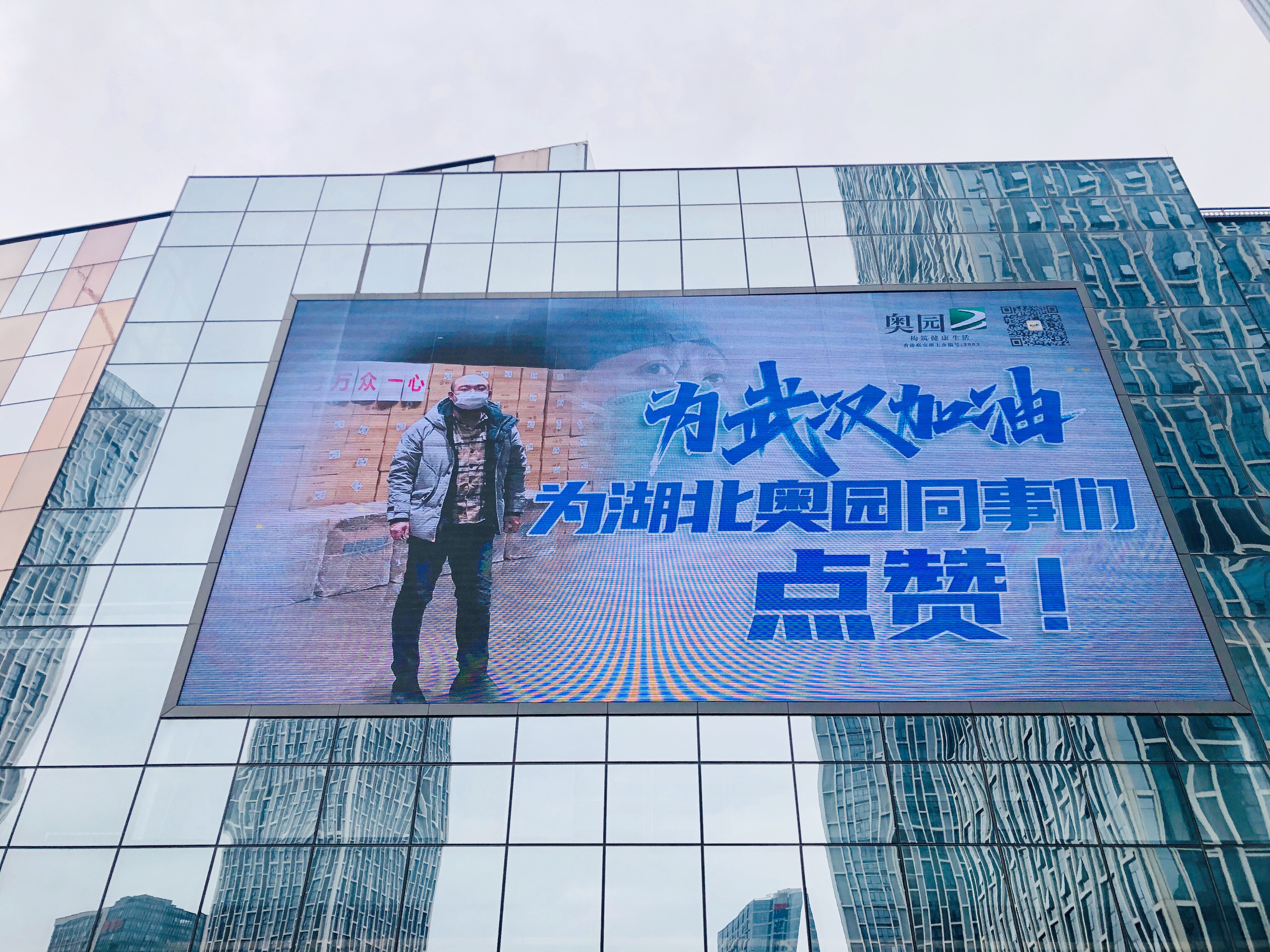 3月2日傍晚,全國各地21個(gè)奧園項(xiàng)目35塊LED大屏同一時(shí)間打出巨幅海報(bào),為武漢加油,向“最美逆行者”致敬,給湖北奧園人點(diǎn)贊。
