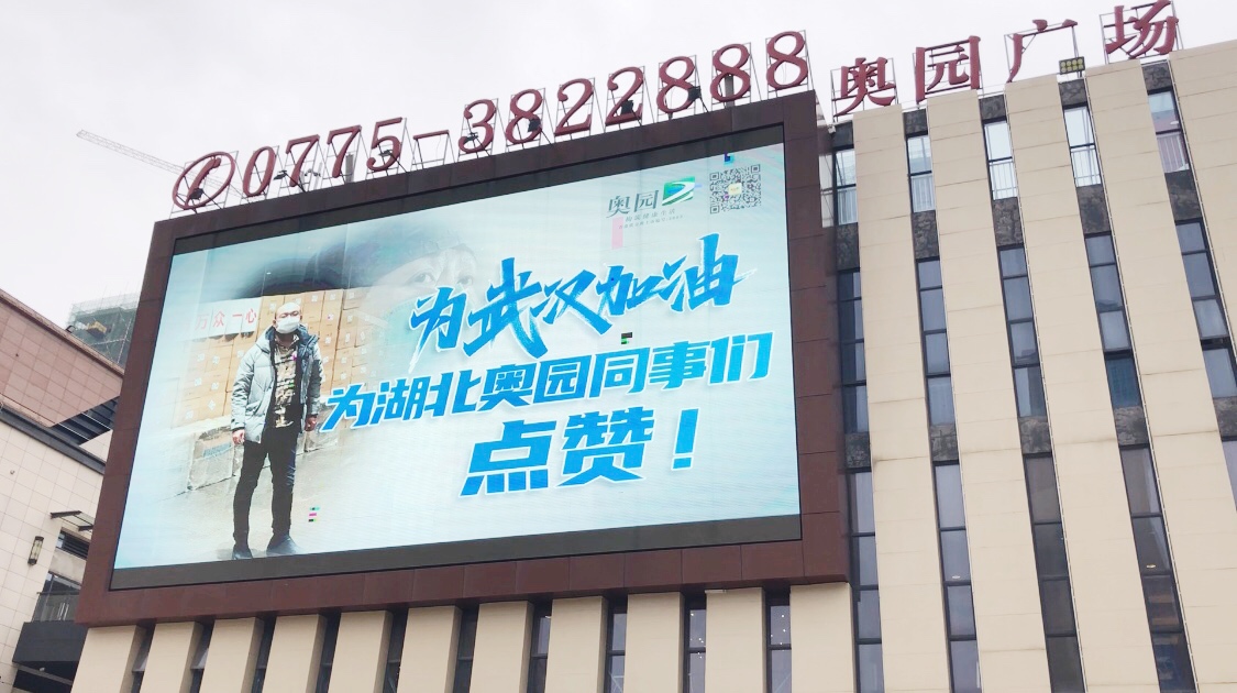 本次加油海報(bào)的聯(lián)動播放,覆蓋了中國奧園旗下多城多個(gè)業(yè)務(wù)板塊的各類場景,包括廣州奧園國際中心、江門奧園廣場、株洲奧園廣場、重慶盤龍奧園廣場等商管項(xiàng)目,惠州奧園領(lǐng)寓、南京天著尚居、鹽城奧園公園悅府等營銷場景以及中山泉林歡樂世界等文旅項(xiàng)目。21個(gè)項(xiàng)目主動參與,35塊LED大屏同時(shí)播放,展現(xiàn)出中國奧園上下一心為武漢、為前線員工加油打氣的熱情。