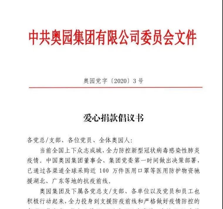 奧園集團(tuán)黨委在2月17日發(fā)布《愛心捐款倡議書》