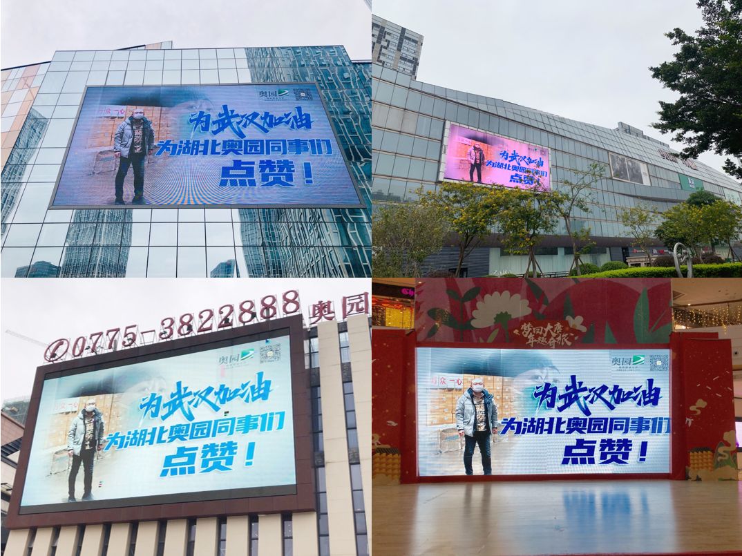 目前,“萬企暖醫(yī)——我們一起行動(dòng)”主題海報(bào)已在中國奧園全國21個(gè)項(xiàng)目樓盤及商業(yè)物業(yè)項(xiàng)目的35塊戶外LED大屏和“麗舞臺”LED屏幕滾動(dòng)播放,吸引市民不自覺地抬頭駐足,仰望在那厚厚的防護(hù)鏡背后,醫(yī)護(hù)人員可愛可敬的面容。