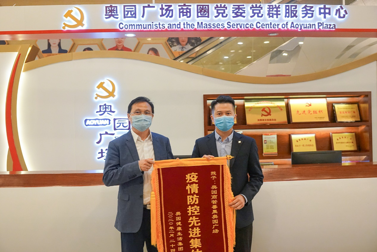 向奧園城市天地頒發(fā)抗疫先進(jìn)集體錦旗