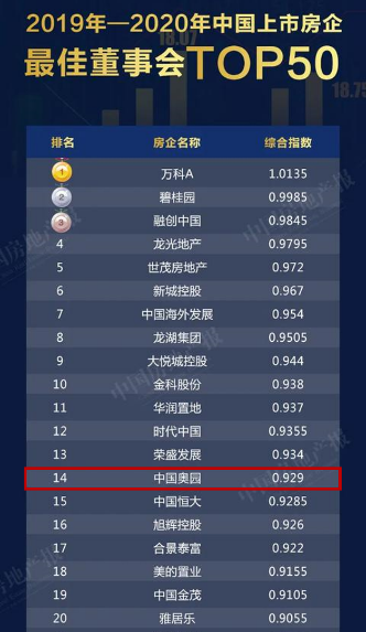 穩(wěn)健治理成就千億龍頭 中國奧園躍登上市房企董事會第14名