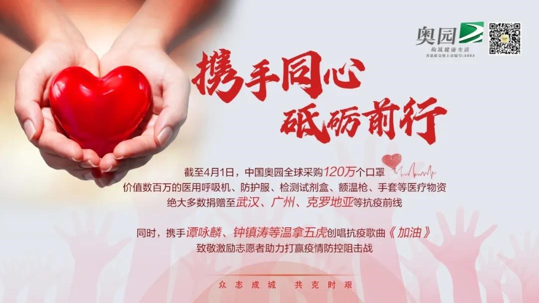 截至4月底,中國奧園已通過各渠道全球采購近120萬只N99、N95、FFP2、FFP1、一次性醫(yī)用等口罩,及相當(dāng)數(shù)量的醫(yī)用呼吸機(jī)、防護(hù)服、檢測試劑盒、額溫槍、手套等醫(yī)療物資,其中絕大多數(shù)均捐贈至武漢、廣州、克羅地亞等抗疫前線。