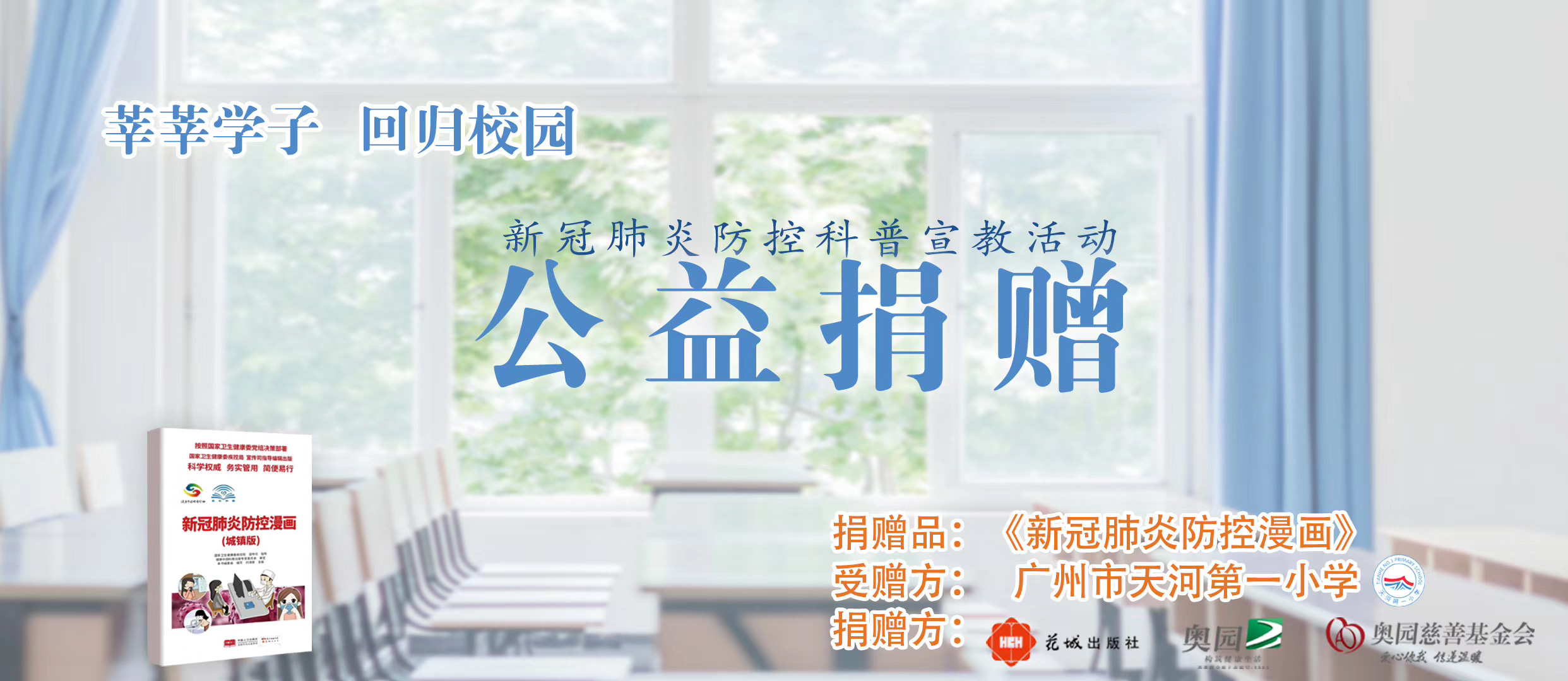 據(jù)捐贈(zèng)方中國(guó)奧園集團(tuán)負(fù)責(zé)人介紹,疫情得到控制并開(kāi)學(xué)后,對(duì)青少年的精神和心理關(guān)懷尤為重要。鑒于此,奧園集團(tuán)延續(xù)其抗疫期間的公益行動(dòng),聯(lián)手花城出版社經(jīng)過(guò)多方聯(lián)系,向廣東省內(nèi)的近70家中小學(xué)(含分校)捐贈(zèng)共計(jì)5.2萬(wàn)冊(cè)《新冠肺炎防控漫畫(huà)》,以保障校園安全,給孩子多一點(diǎn)提醒,讓父母和學(xué)校多一份安心。