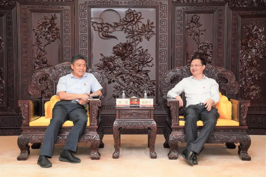中國奧園集團黨委書記、總裁郭梓寧(右)與農(nóng)業(yè)銀行廣州分行行長黎朝(左)交流座談