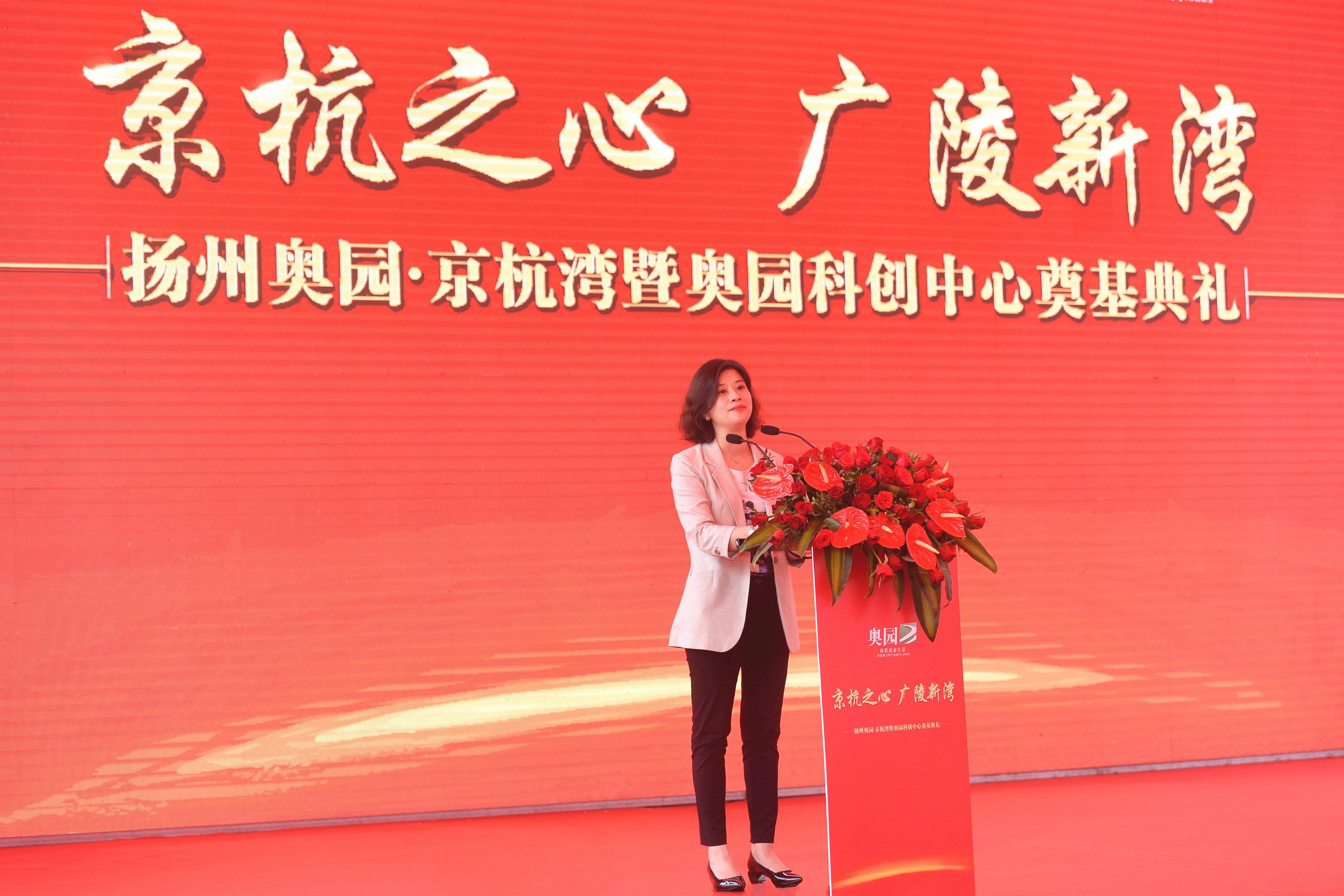 奧園集團黨委副書記、奧園商業(yè)地產(chǎn)集團副總裁林莉宣讀《關(guān)于成立中共奧園集團揚州奧園京杭灣工地臨時支部委員會及支部委員任命的通知》