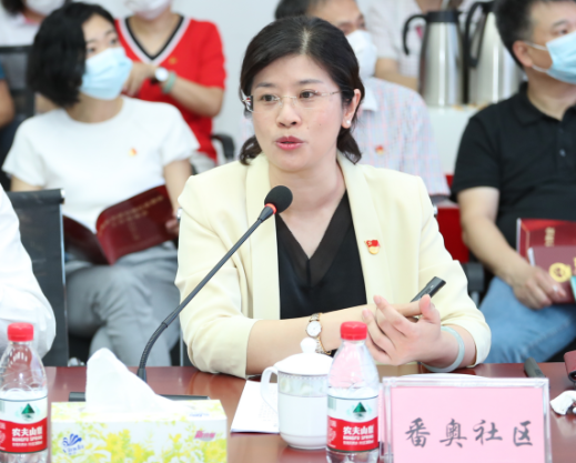 中國奧園集團(tuán)黨委副書記林莉介紹番奧社區(qū)黨建引領(lǐng)物業(yè)工作情況