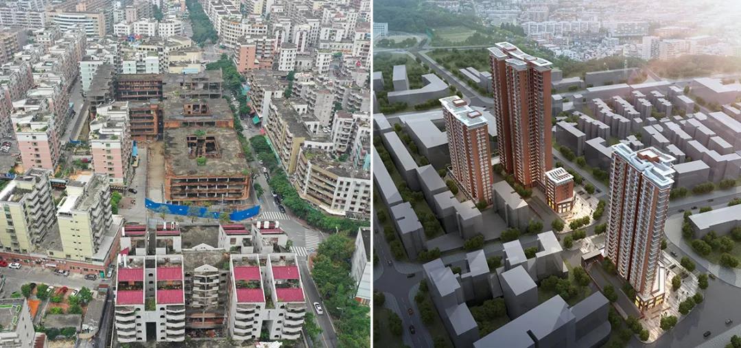 珠海香洲翠微村原狀(左)和效果圖(右)