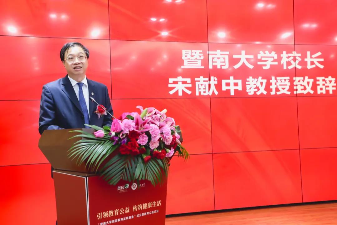 金秋九月,丹桂飄香。9月23日,“暨南大學(xué)奧園教育發(fā)展基金”成立暨教育公益論壇在暨南大學(xué)召開。暨南大學(xué)校長宋獻(xiàn)中、黨委副書記孫彧以及相關(guān)部處學(xué)院領(lǐng)導(dǎo),中國奧園集團(tuán)董事會(huì)主席郭梓文,集團(tuán)副總裁郭士國,集團(tuán)副總裁、奧園科技集團(tuán)總裁胡冉,奧園健康生活集團(tuán)總裁蘇波等領(lǐng)導(dǎo)嘉賓共同出席。