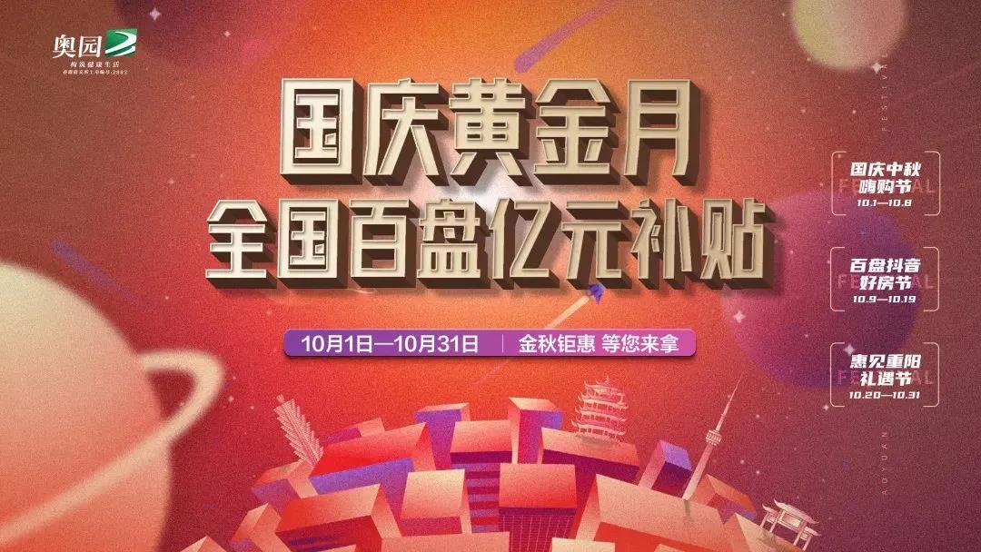 黃金周前后,中國(guó)奧園重磅出擊,推出了“奧園挑房節(jié)”“奧園鉅惠節(jié)”“國(guó)慶黃金月”“奧園沸騰節(jié)”等系列活動(dòng),全國(guó)項(xiàng)目聯(lián)動(dòng),引起社會(huì)各界高度關(guān)注與認(rèn)可。