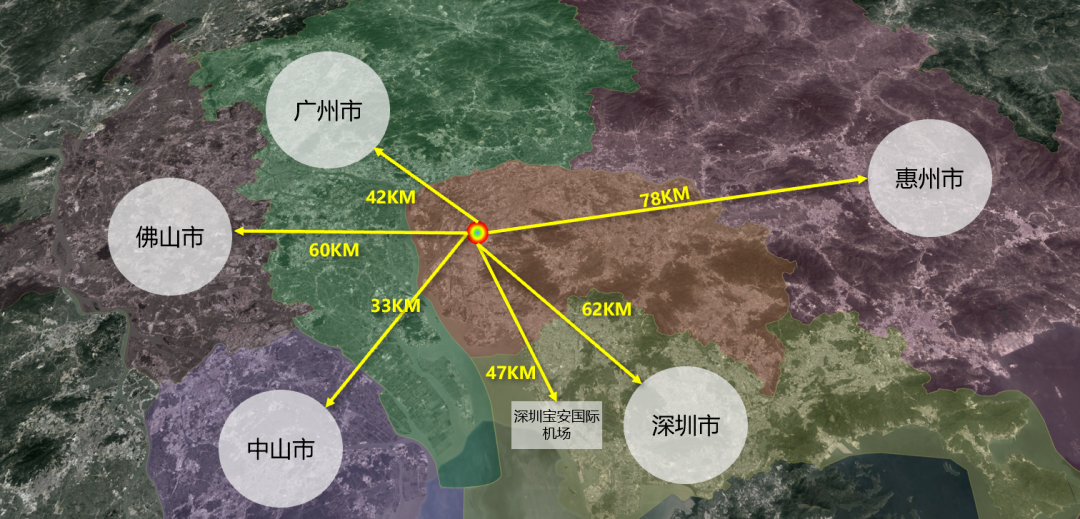 距離廣州、深圳、佛山、中山、惠州城區(qū)均僅1小時(shí)左右車程,成為大灣區(qū)交通及產(chǎn)業(yè)資源的必經(jīng)之地。