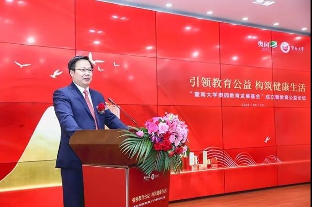 9月23日, 郭梓文主席在“暨南大學(xué)奧園教育發(fā)展基金”成立儀式上致辭