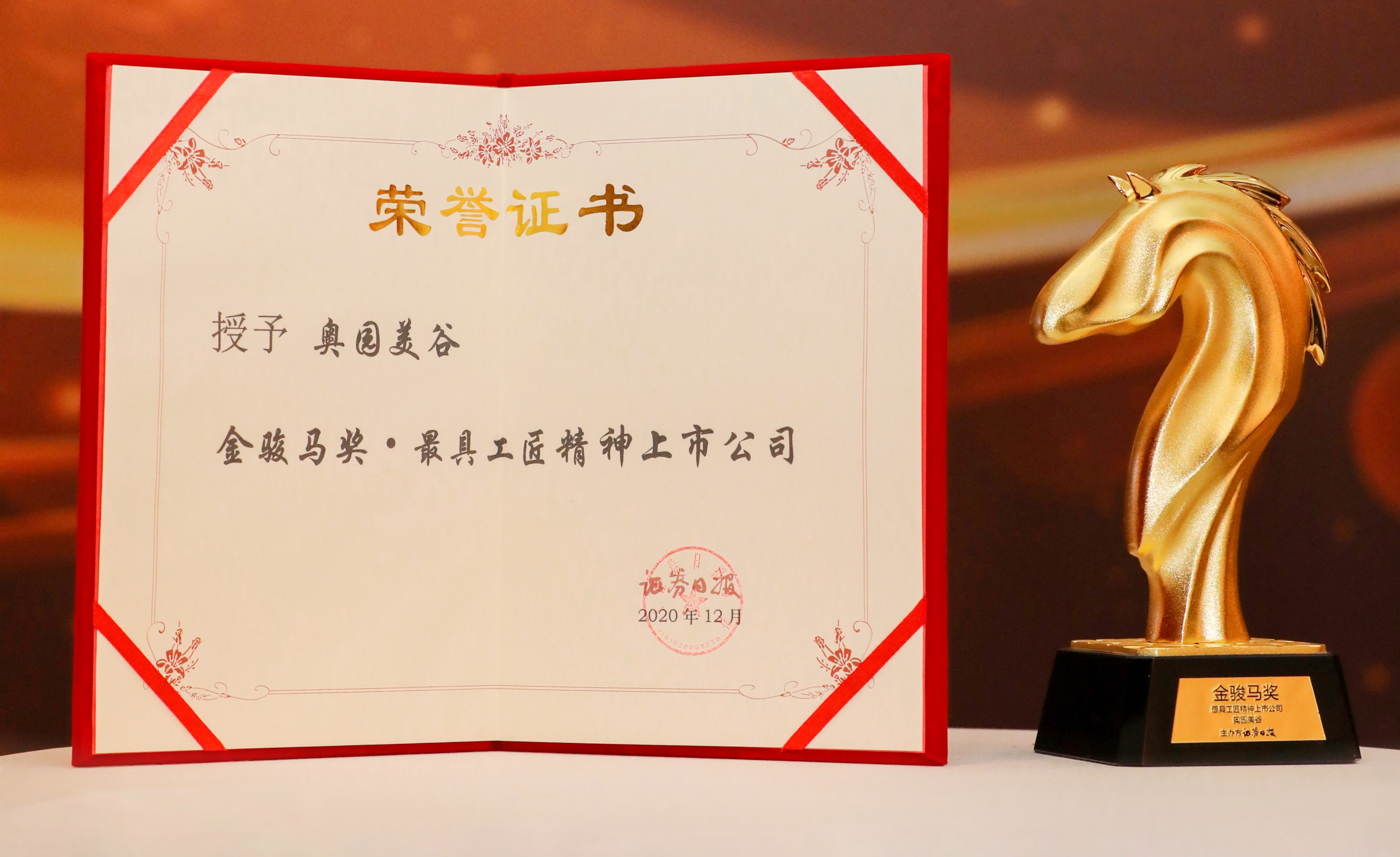 12月11日,由《證券日?qǐng)?bào)》社主辦的“第四屆新時(shí)代資本論壇”在北京隆重召開,并揭曉“2020年度中國(guó)證券市場(chǎng)金駿馬獎(jiǎng)”,奧園美谷憑借不斷提升的公司治理水平、持續(xù)改善的經(jīng)營(yíng)管理情況、清晰明確的未來發(fā)展戰(zhàn)略,榮膺“金駿馬獎(jiǎng)·最具工匠精神上市公司”。