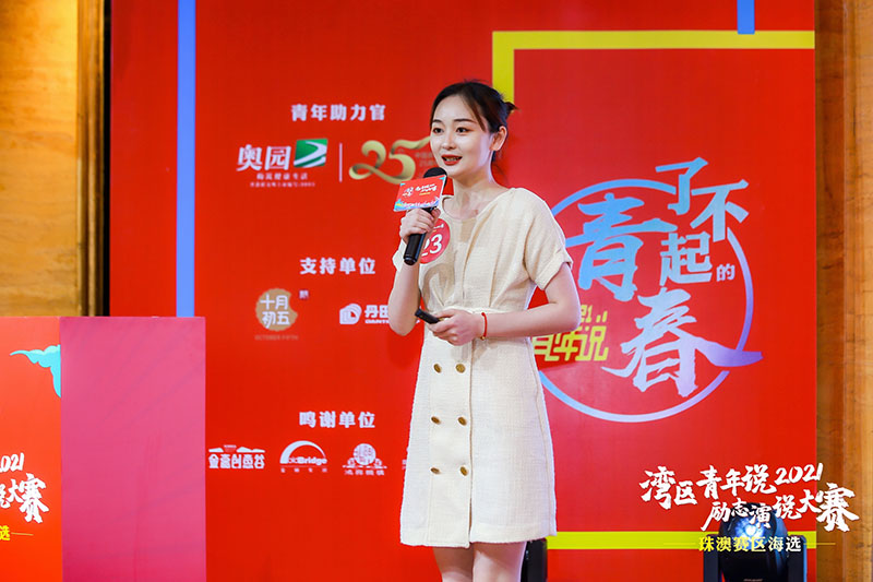 經(jīng)過近3個小時的激烈角逐,10名選手脫穎而出獲得2021“灣區(qū)青年說”勵志演說大賽珠澳賽區(qū)海選“十佳演說選手”稱號。名列前5的選手,將與來自其他灣區(qū)城市的優(yōu)秀選手,相聚在4月27日舉行的半決賽,展開新一輪的角逐。其中,來自中國奧園集團2019屆的管培生馬璐,結合自己的人生經(jīng)歷及奧園集團奮斗文化,講述在大灣區(qū)夢想綻放的精彩故事,傳播灣區(qū)青年的青春力量。