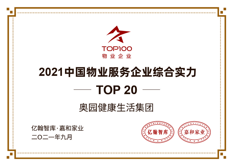 15日,億翰智庫舉辦2021CRS中國房地產(chǎn)業(yè)戰(zhàn)略峰會,發(fā)布中國房企綜合實力及品牌價值研究成果,中國奧園集團躍居2021中國房企綜合實力第21名,穩(wěn)居行業(yè)前30強。此外,還獲得了“中國房企品牌價值”第17名、“中國房企商業(yè)物業(yè)價值”第10名、“中國房企穩(wěn)健經(jīng)營二十強”、“中國房企粵港澳大灣區(qū)競爭力十強”、“中國房地產(chǎn)企業(yè)自媒體運營十強”、“中國房企華南區(qū)域品牌競爭力十強”獎項。而奧園健康獲得2021中國物業(yè)企業(yè)綜合實力第14名等多項榮譽。