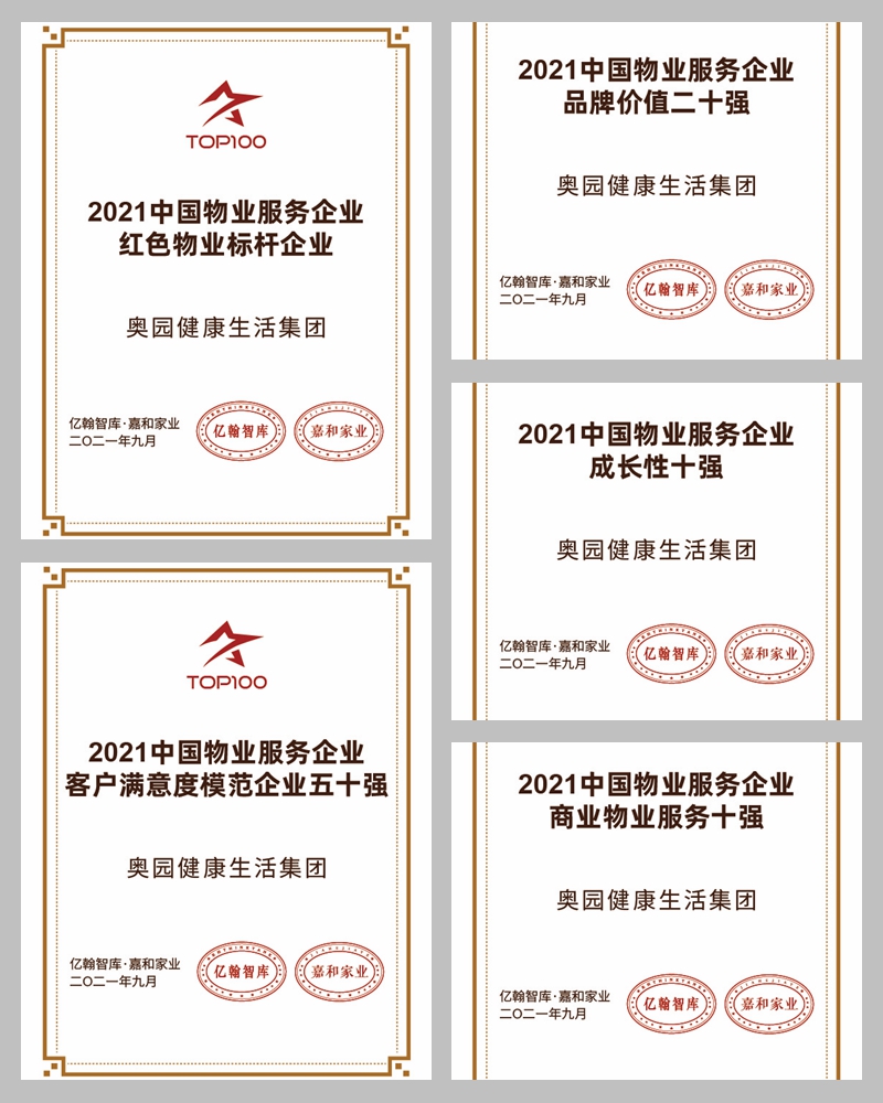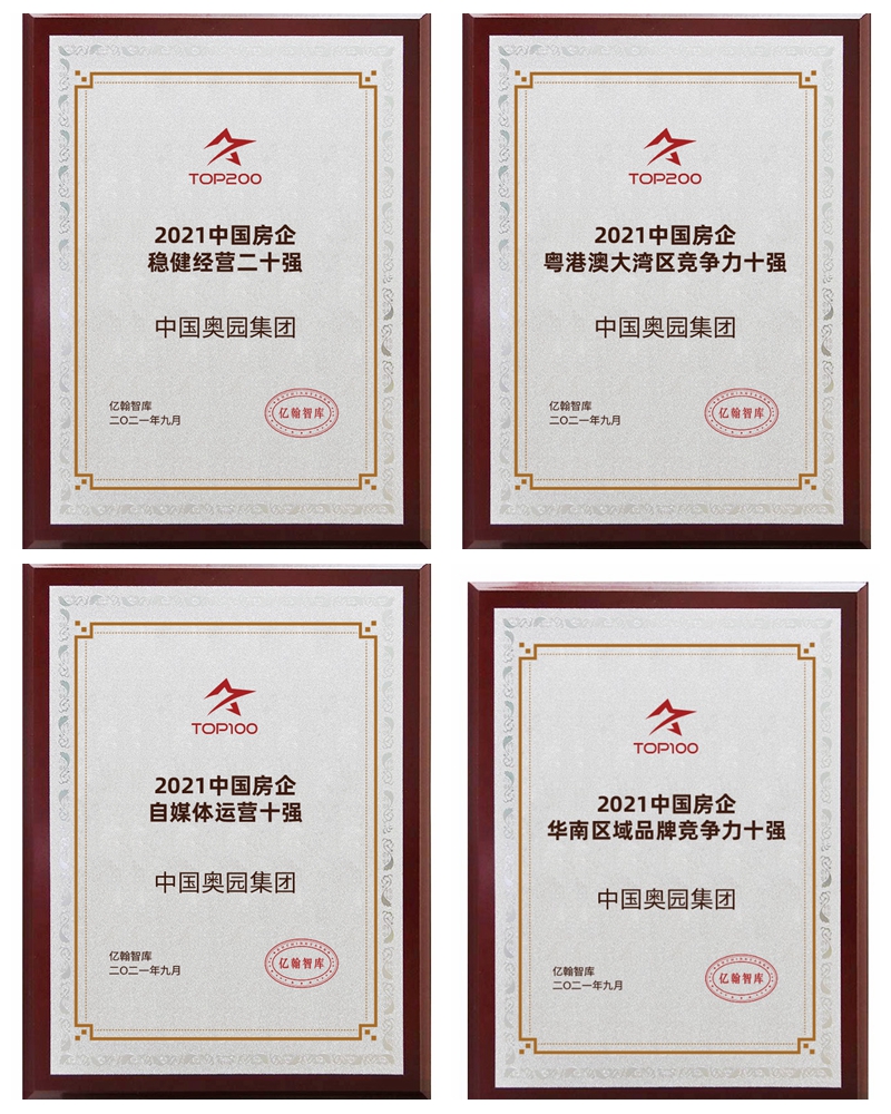 同日,中指研究院發(fā)布《2021中國房地產(chǎn)品牌價值研究報告》,中國奧園及奧園健康再度攬獲包括“房地產(chǎn)品牌價值第12名”在內(nèi)的5項殊榮。