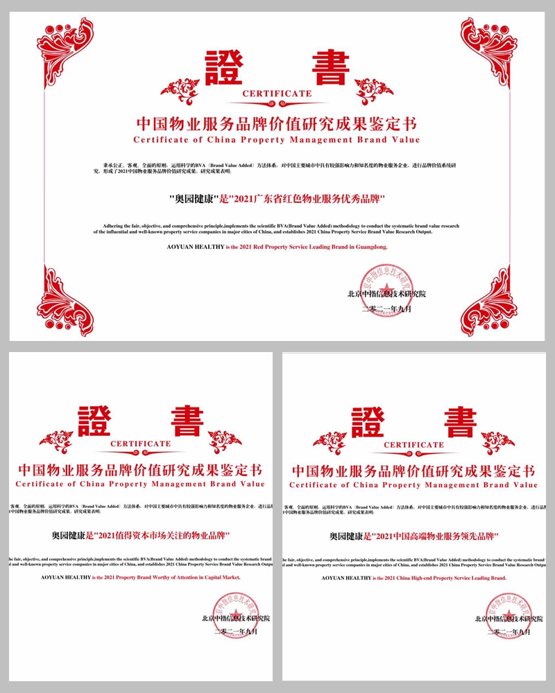 同日,中指研究院發(fā)布《2021中國房地產(chǎn)品牌價值研究報告》中,中國奧園攬獲“2021中國房地產(chǎn)品牌價值第12名”和“2021中國房地產(chǎn)產(chǎn)品力優(yōu)秀企業(yè)”獎項。而奧園健康奪得“廣東省紅色物業(yè)服務(wù)優(yōu)秀品牌”“值得資本市場關(guān)注的物業(yè)品牌”“高端物業(yè)服務(wù)領(lǐng)先品牌”多項嘉獎。