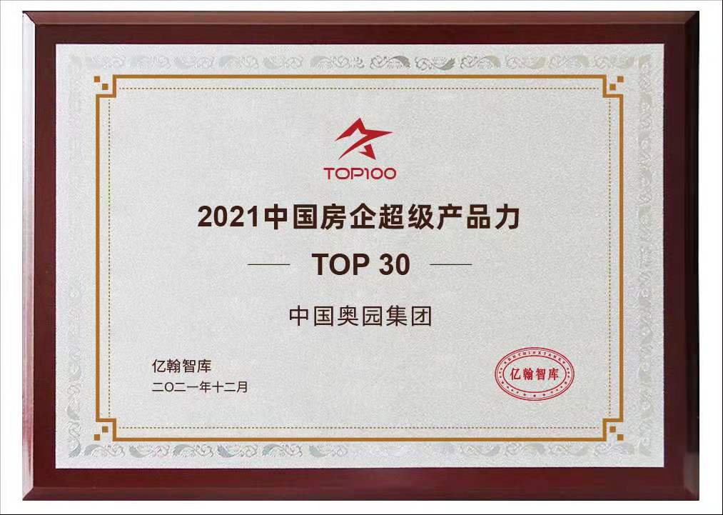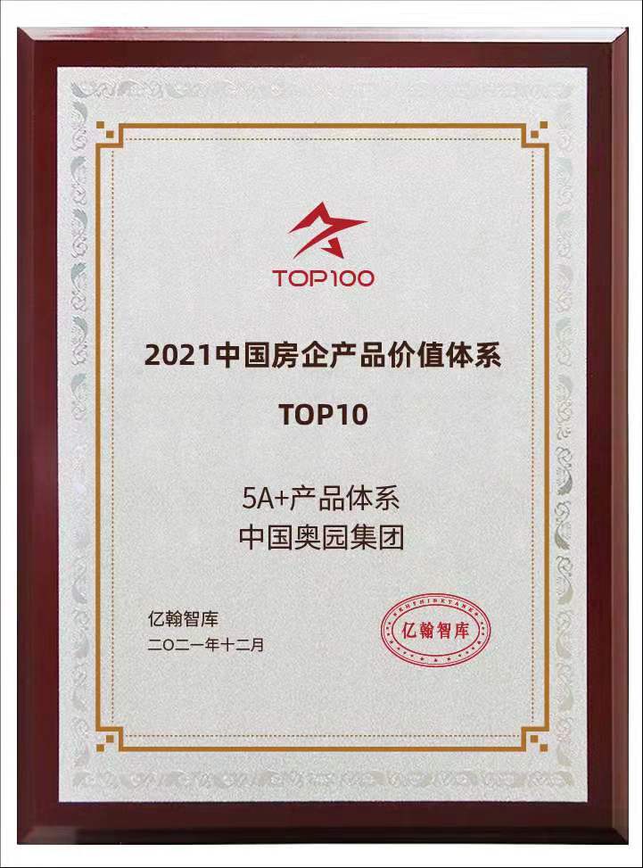 中國(guó)奧園榮列“2021中國(guó)房企產(chǎn)品價(jià)值體系TOP10”