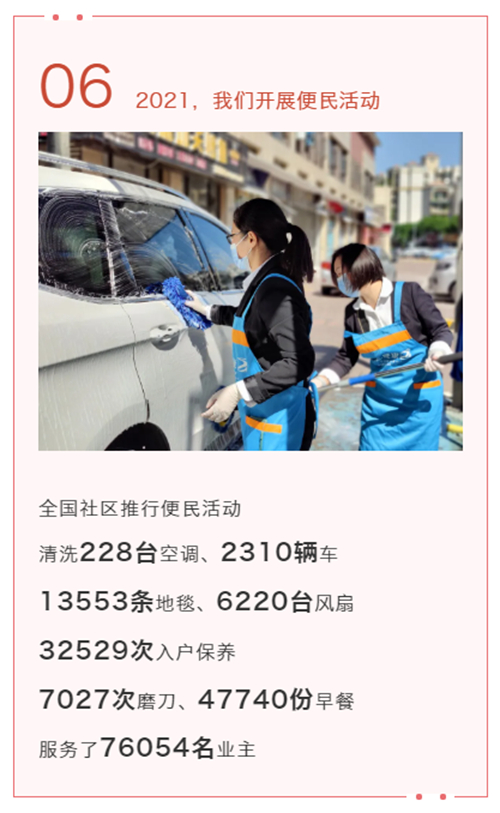 為全面提升服務品質,奧園在全國社區(qū)持續(xù)推行便民活動,清洗空調、車輛,入戶保養(yǎng),送早餐上門等便民服務,全面改善業(yè)主居住體驗,有效提升業(yè)主滿意度。