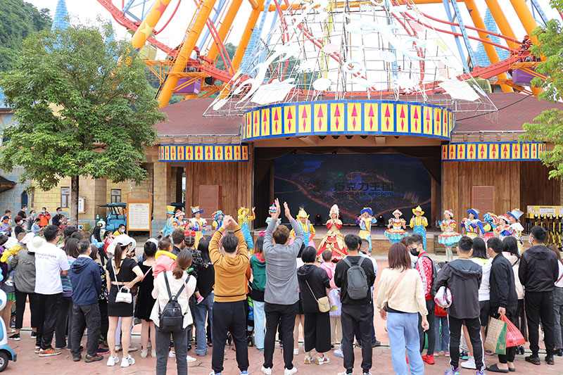 在文旅板塊,五一期間,奧園英德巧克力王國的英德喀斯特湯泉水世界(造浪池)盛大開放,“百萬漂流瓶,金條撈不停”主題活動(dòng),受到游客歡迎。此外,項(xiàng)目還推出“啤酒美食嘉年華”活動(dòng)以及《奇幻魔術(shù)》《工廠明星見面會(huì)》《巧克力豆豆舞》《巧克力總動(dòng)員巡游》等互動(dòng)表演,體驗(yàn)感十足。