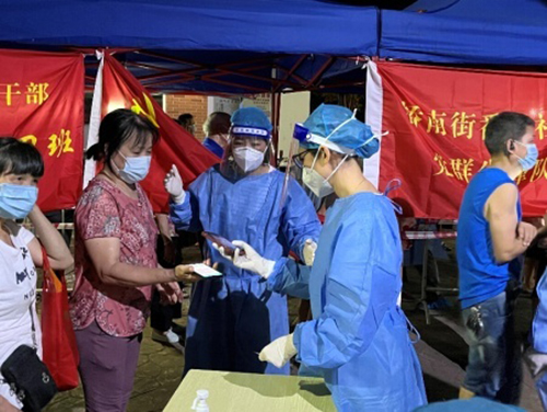 自當天16時收到消息,奧園集團黨委、番奧社區(qū)黨委、奧園廣場商圈黨委、奧園集團團委、奧園慈善基金會立即聯(lián)合行動,對接番禺區(qū)南村鎮(zhèn)黨委、橋南街黨工委了解情況,并迅速在1小時內(nèi)集結(jié)20多名黨團員志愿者快速到崗萬博和番奧社區(qū)核酸檢測點開展志愿服務,并為現(xiàn)場工作人員捐贈慰問品,第一時間筑起抗疫防疫紅色堡壘。