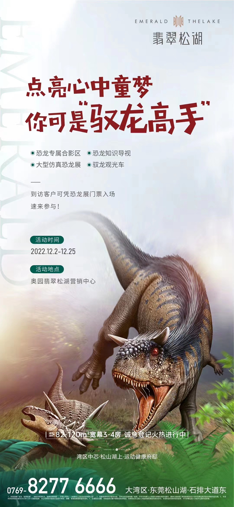 目前,翡翠松湖項(xiàng)目正誠(chéng)意登記中。12月2日至25日到訪,還可以現(xiàn)場(chǎng)參觀大型“奇幻恐龍展,探秘侏羅紀(jì)”展覽。期間,現(xiàn)場(chǎng)還會(huì)設(shè)置專屬科普知識(shí),更有激萌恐龍拍照打卡點(diǎn),體驗(yàn)與龍仔一起破殼而出,期待與您共鑒神秘奇遇。