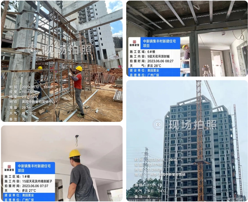 目前奧園中新譽(yù)府1#樓外墻涂料及裝修同步施工中,2~17層防火門框安裝完成;2#樓外墻涂料及公區(qū)裝修施工中,2~17層防火門框安裝完成;5#樓主體結(jié)構(gòu)施工中,4層墻柱及5層板模板已完成;6#樓外墻涂料及裝修同步施工中,2-19層防火門框安裝完成。園林示范區(qū)小區(qū)門樓主體干掛石材龍骨施工完成50%。