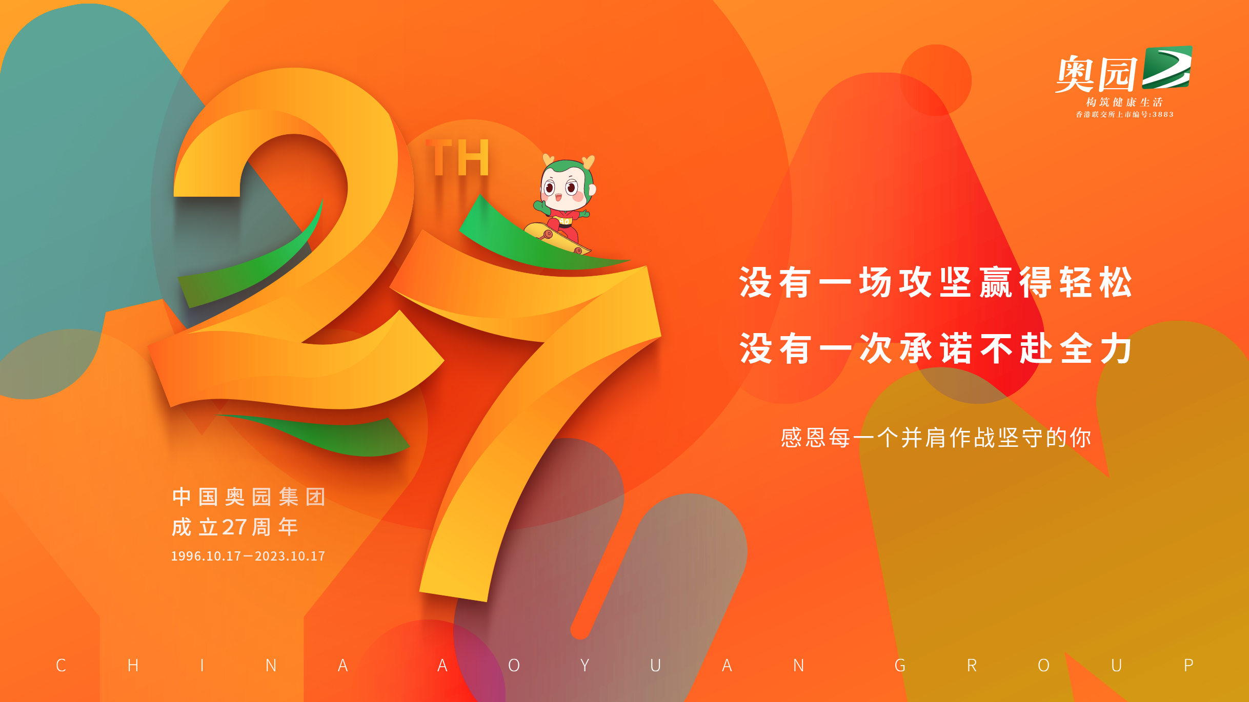 今天,中國奧園迎來成立27周年的大日子。