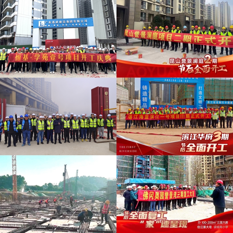 節(jié)后開工首日起,奧園多城市在建項(xiàng)目紛紛第一時(shí)間召集多方集體會(huì)商,組織召開開工動(dòng)員會(huì)、復(fù)工儀式等,專項(xiàng)推進(jìn)復(fù)工復(fù)產(chǎn),合理安排建設(shè)計(jì)劃,逐一落實(shí)勞動(dòng)力、機(jī)械設(shè)備和周轉(zhuǎn)材料,并按照進(jìn)度計(jì)劃要求明確節(jié)點(diǎn)、倒排項(xiàng)目工期、夯實(shí)責(zé)任到人。截至目前,廣州學(xué)苑壹號(hào)、東莞翡翠瀾灣、湛江濱江一號(hào)、佛岡譽(yù)景灣、昆山譽(yù)景瀾庭、青島翡翠云城、南寧棠悅府、重慶悅府、蚌埠譽(yù)府、西安璞樾ONE、成都麓語ONE等近30個(gè)項(xiàng)目已先后開啟“忙碌”模式,有序按照生產(chǎn)計(jì)劃要求落實(shí)落地,推動(dòng)項(xiàng)目復(fù)工復(fù)產(chǎn),以實(shí)際行動(dòng)沖刺全年交付目標(biāo)。