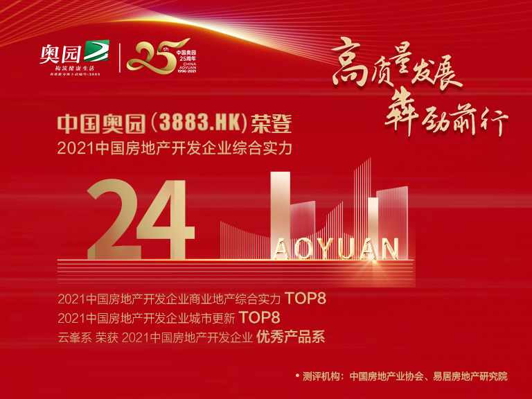 中國(guó)奧園榮獲“2021房地產(chǎn)開發(fā)企業(yè)30強(qiáng)”等四項(xiàng)大獎(jiǎng)