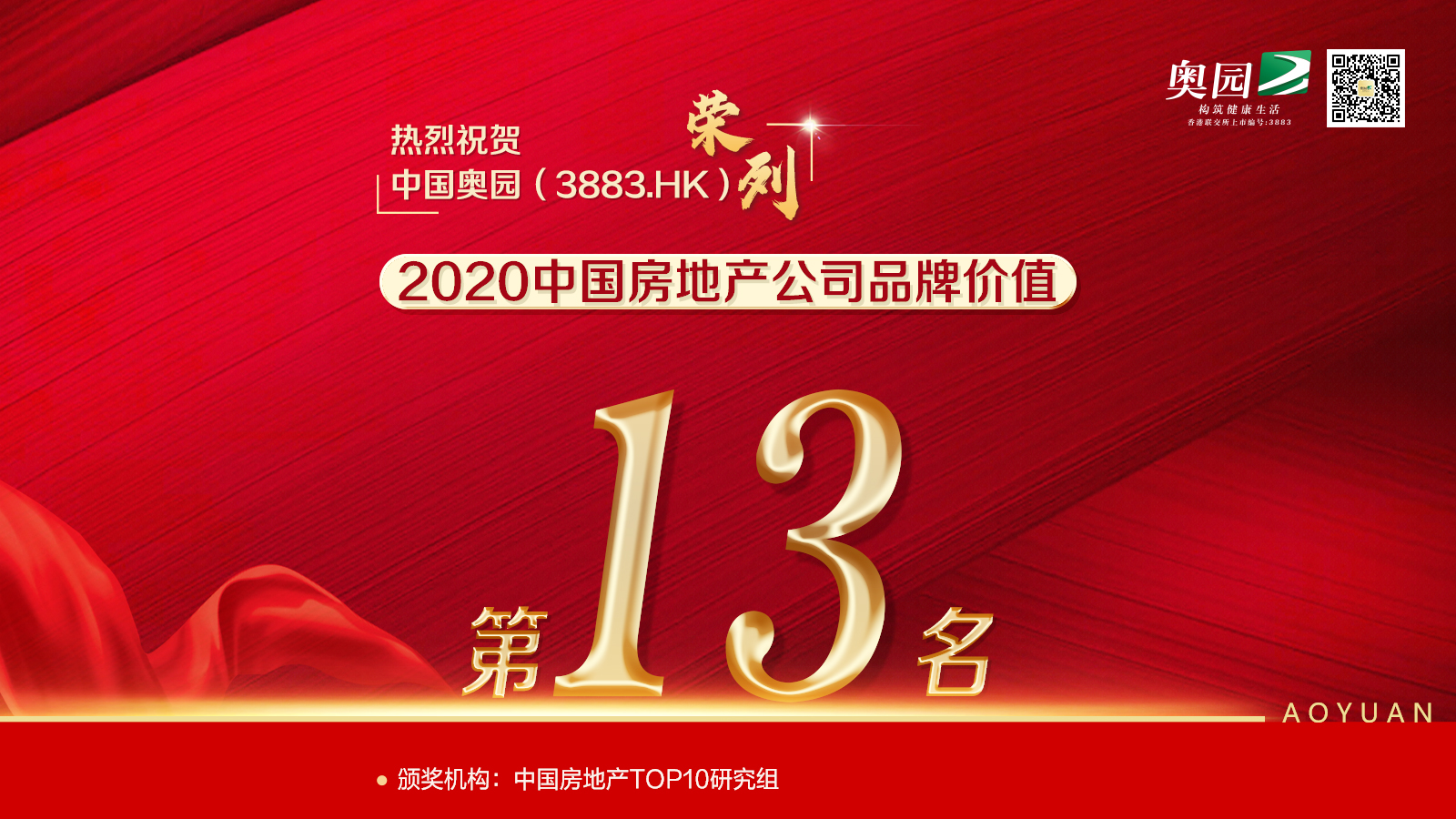 中國奧園榮膺“中國房地產(chǎn)公司品牌價值”第13名