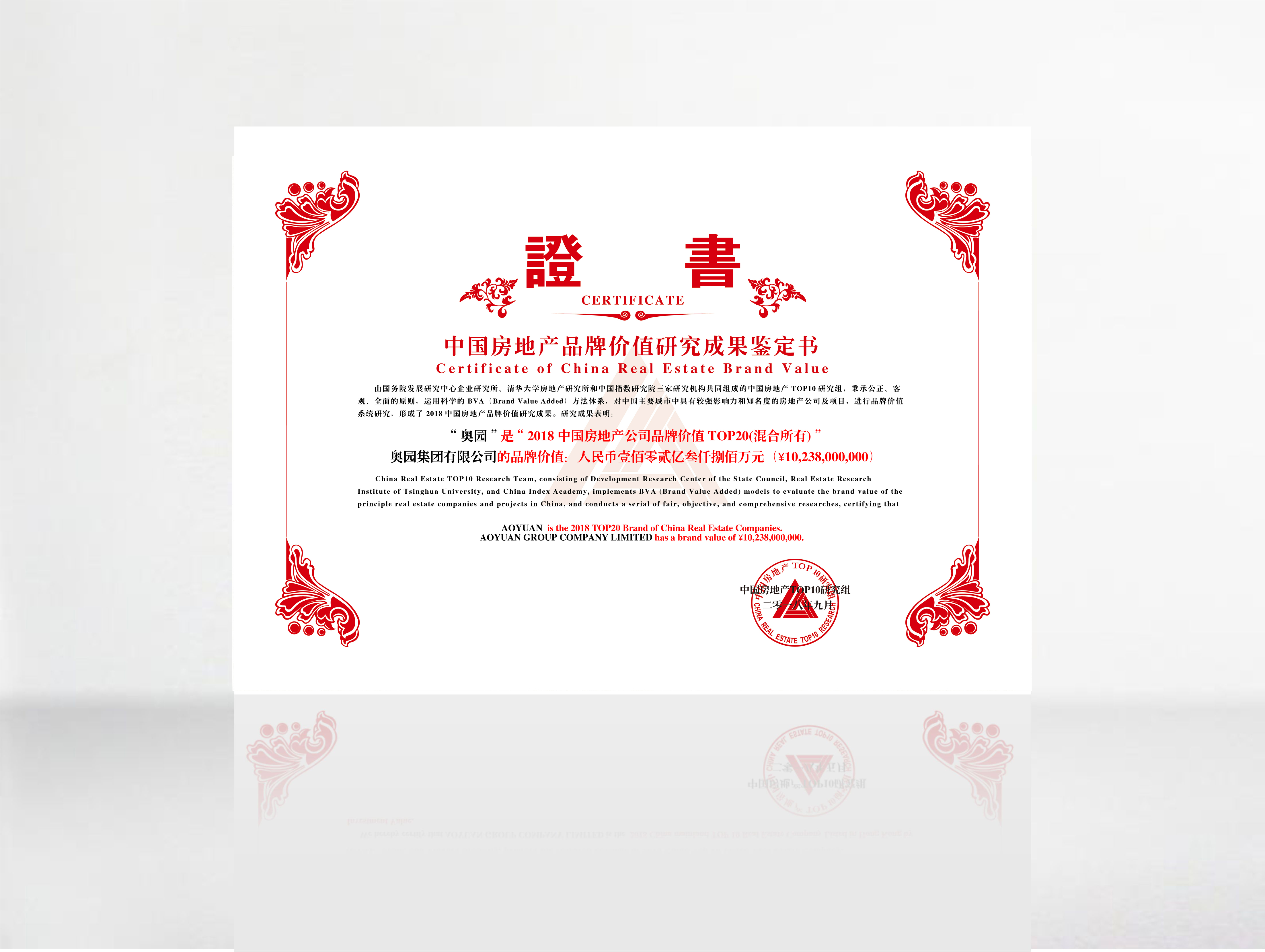 奧園榮獲2018中國房地產(chǎn)公司品牌價(jià)值第15名