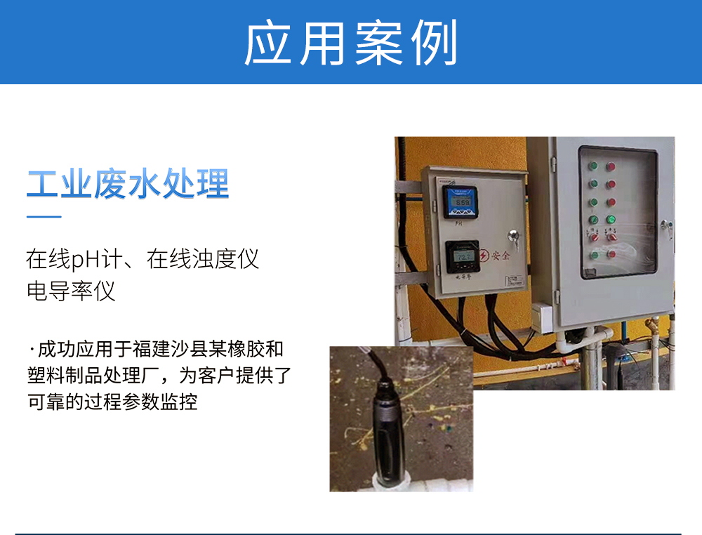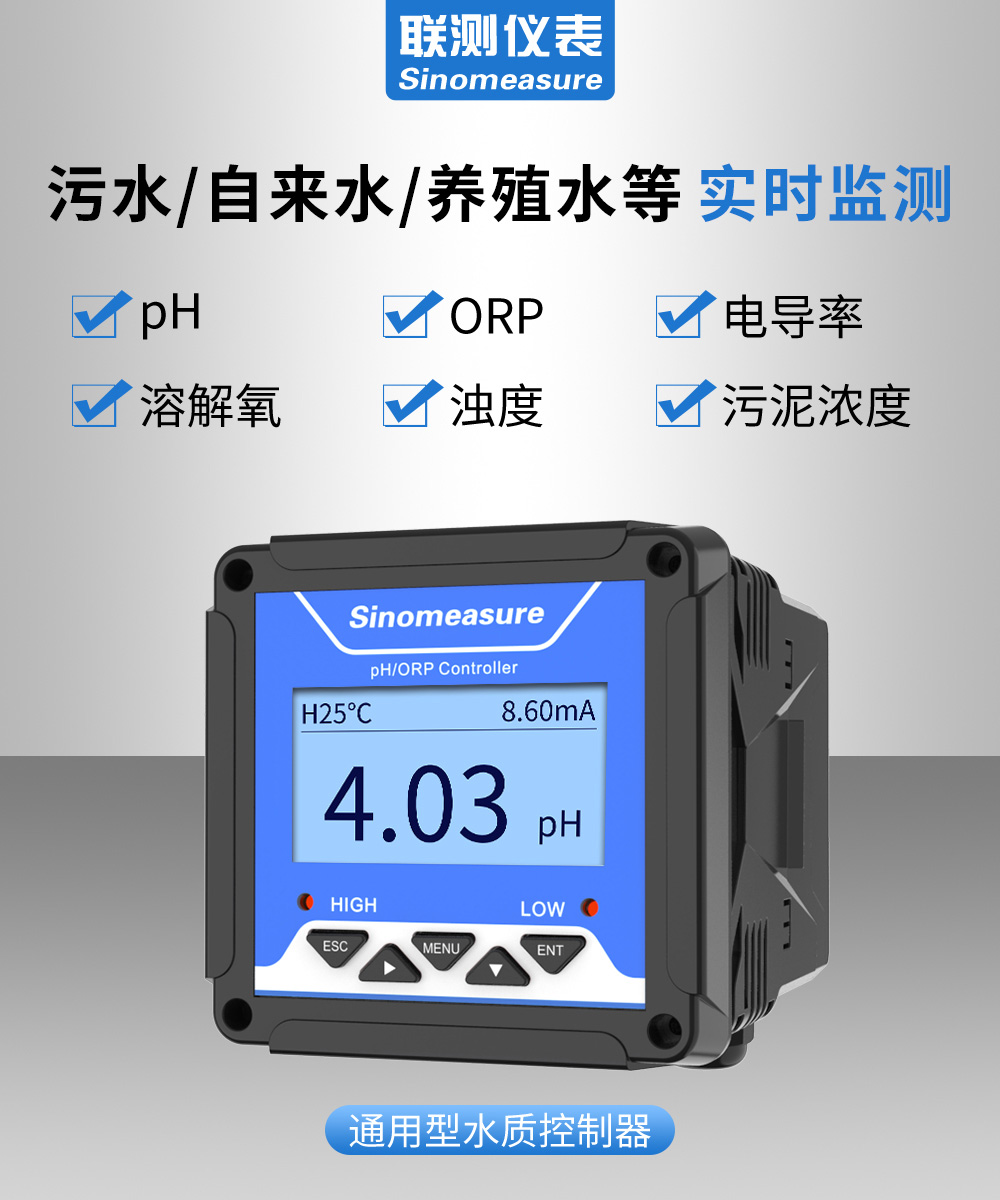本產品為水質通用型控制器,適用于與本公司多種水質系列數字傳 感器配套使用,用于監測包括 pH、ORP、電導率、溶解氧、濁度、污泥 濃度等水質參數,監測的參數通過 RS485 或電流變送輸出到監控室進行 記錄保存。CN1