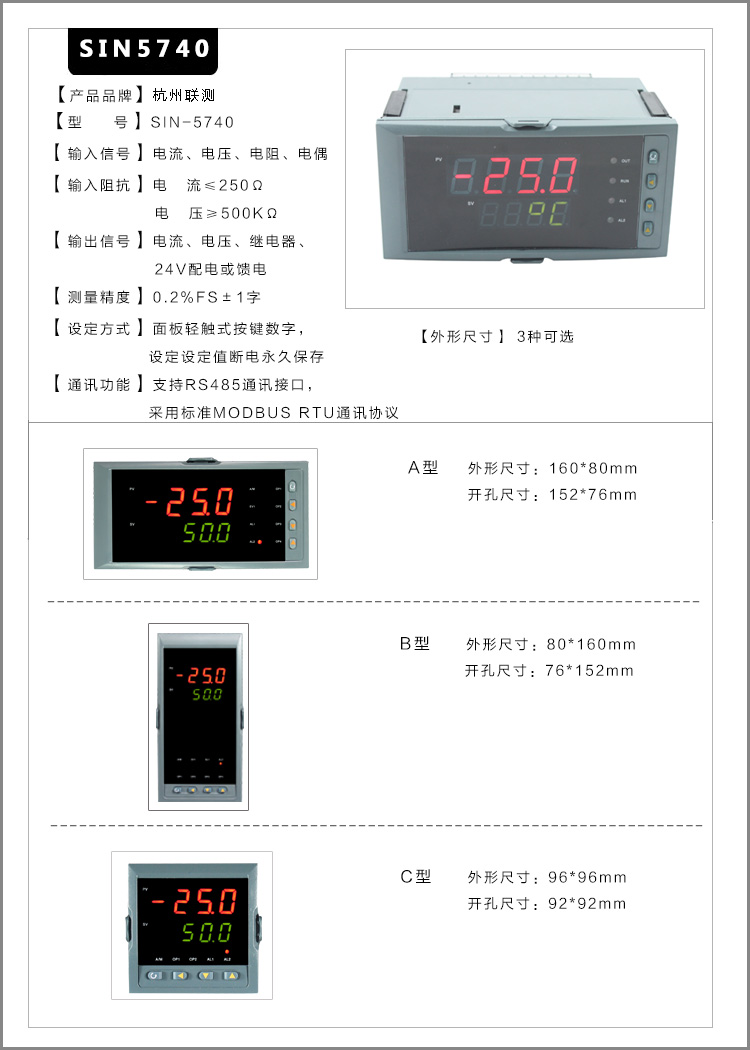 SIN-2740四回路數(shù)字顯示控制儀采用了表面貼裝工藝,全自動貼片機(jī)生產(chǎn),具有很強(qiáng)的抗干擾能力。本儀表支持多種信號類型輸入,可與各類傳感器、變送器配套使用,實現(xiàn)對溫度、壓力、液位、速度、力等物理量的測量顯示,可同時顯示四路測量信號,可帶 8 路分別報警輸出或 4 路分別變送輸出功能、RS485/232 通訊等輸出功能,適用于需要進(jìn)行多測量點檢測的系統(tǒng)。CN3