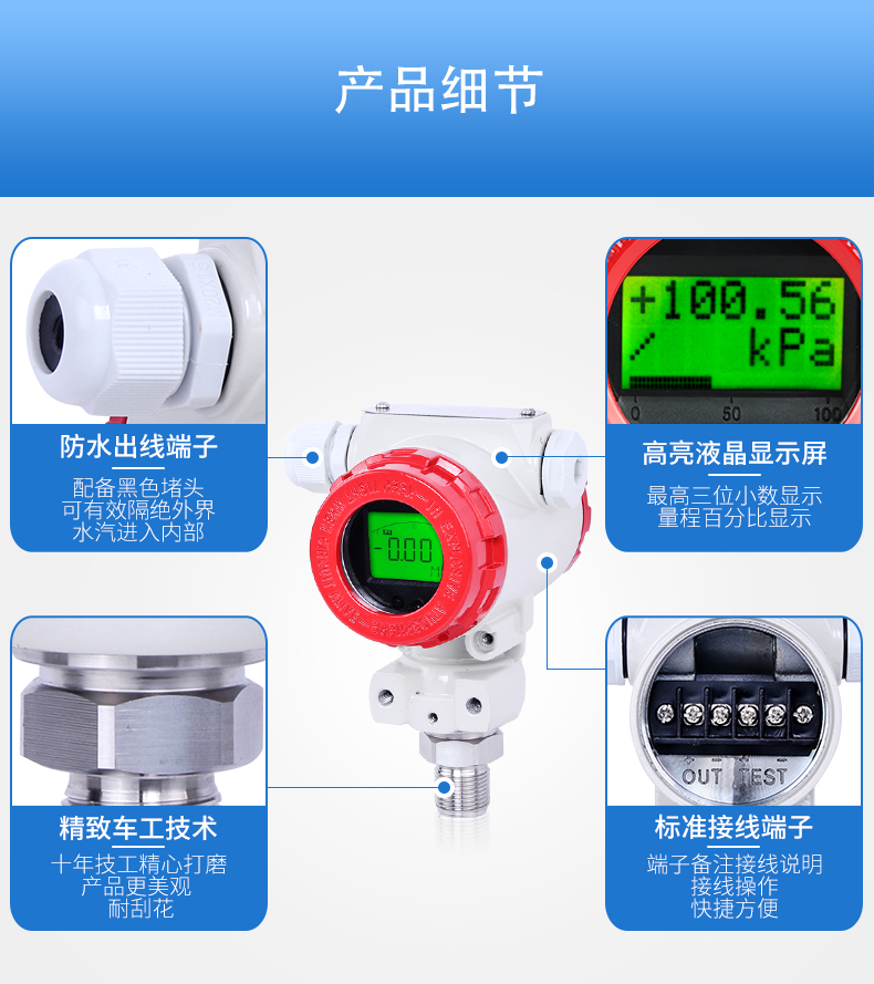 壓力變送器壓力敏感核心采用了高性能的硅壓阻式壓力 充油芯體,內部的專用集成電路將傳感器毫伏信號轉換成標 準遠距離傳輸的電流信號,可以直接與計算機接口卡、控制 儀表、智能儀表或 PLC 等方便相連。該系列產品廣泛應用于 工業過程控制、石油、化工、冶金等行業。CN10