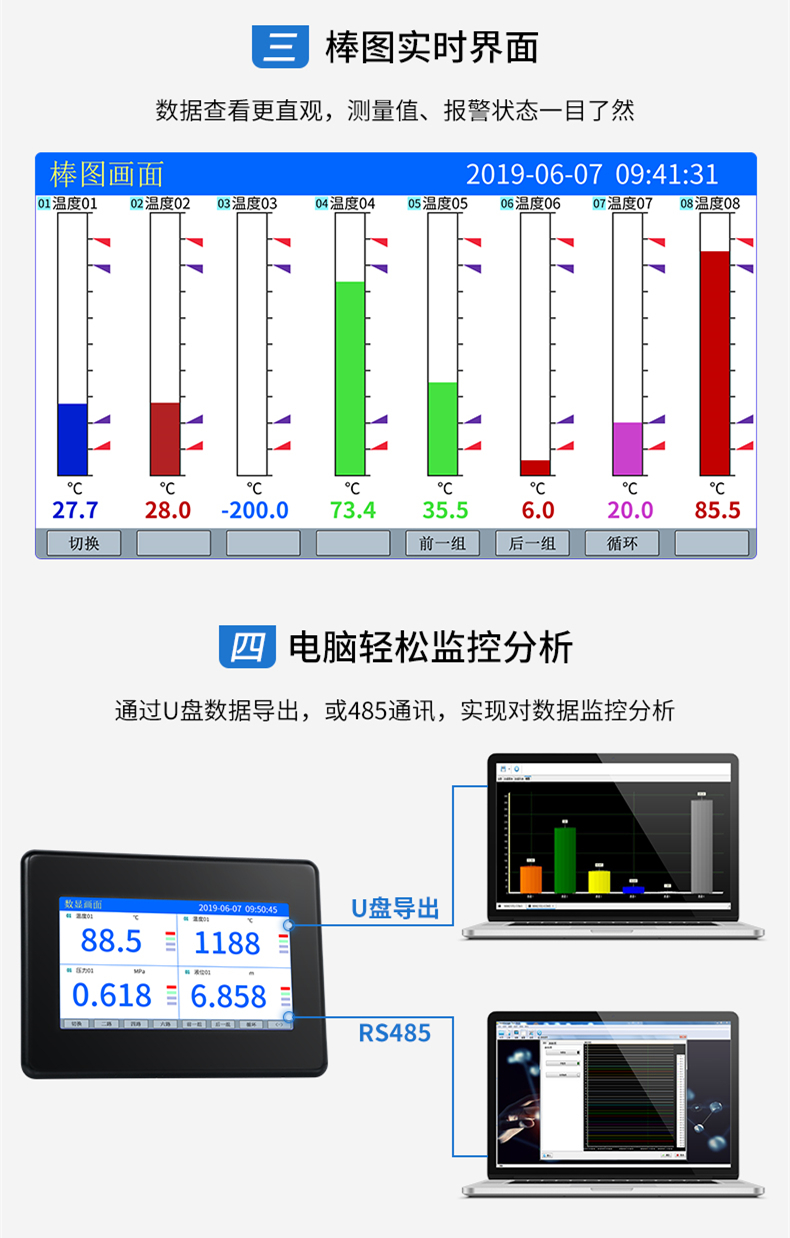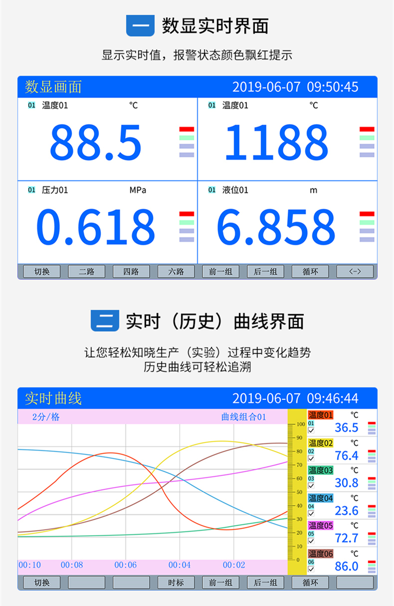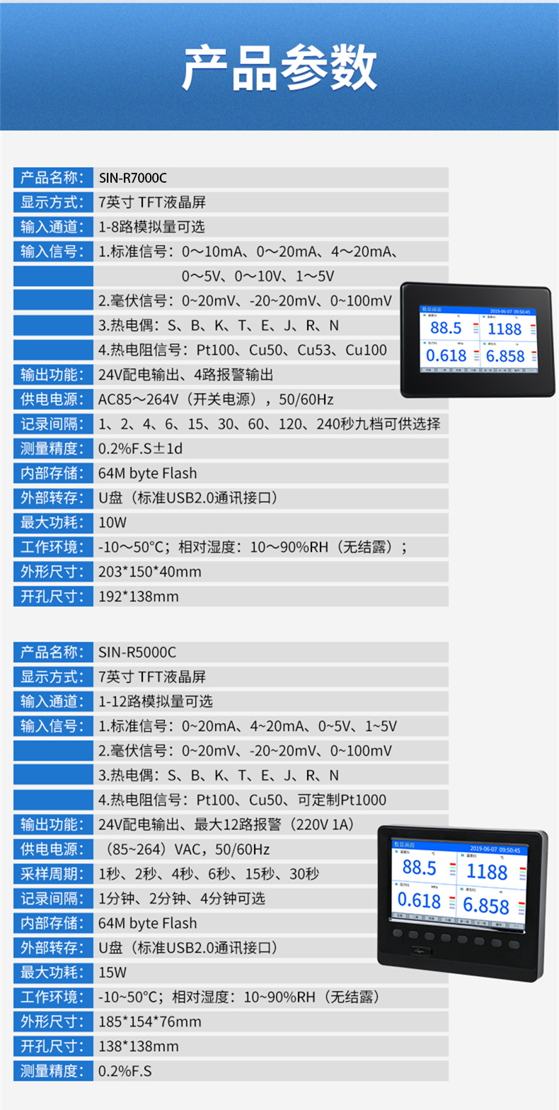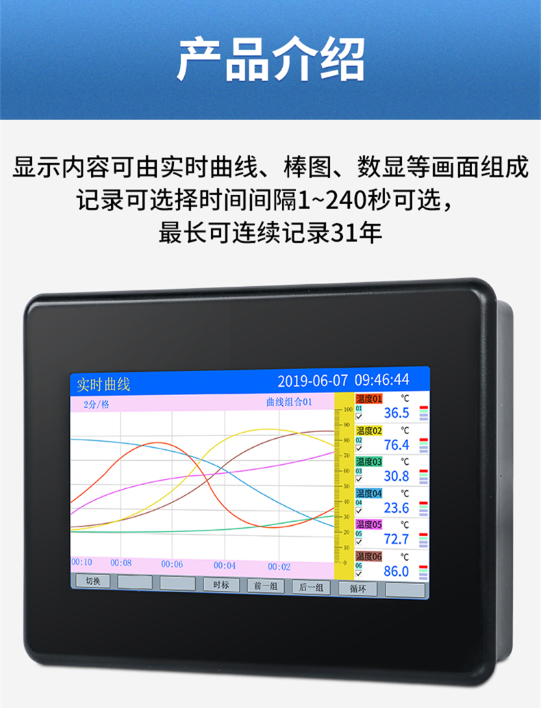 • 聯測_SIN-R7000C_(觸摸屏)1-8路可選_7英寸無紙記錄儀_溫度_壓力_多種參數