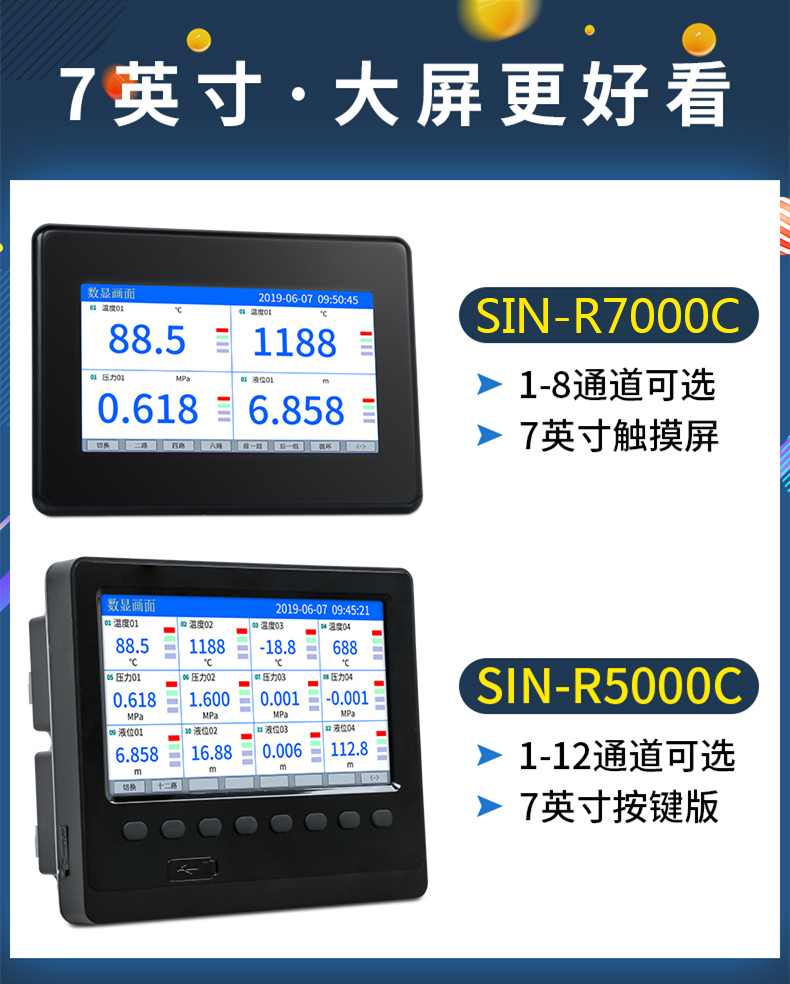 聯測_SIN-R7000C_(觸摸屏)1-8路可選_7英寸無紙記錄儀_溫度_壓力_多種參數