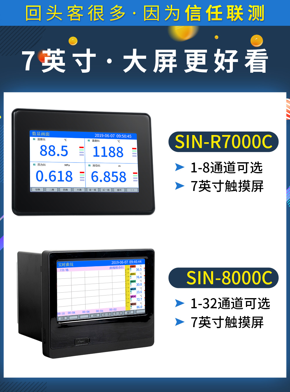 聯(lián)測(cè)_SIN-R8000C_(觸摸屏)1-32路可選_7英寸無(wú)紙記錄儀_溫度_壓力_多種參數(shù)