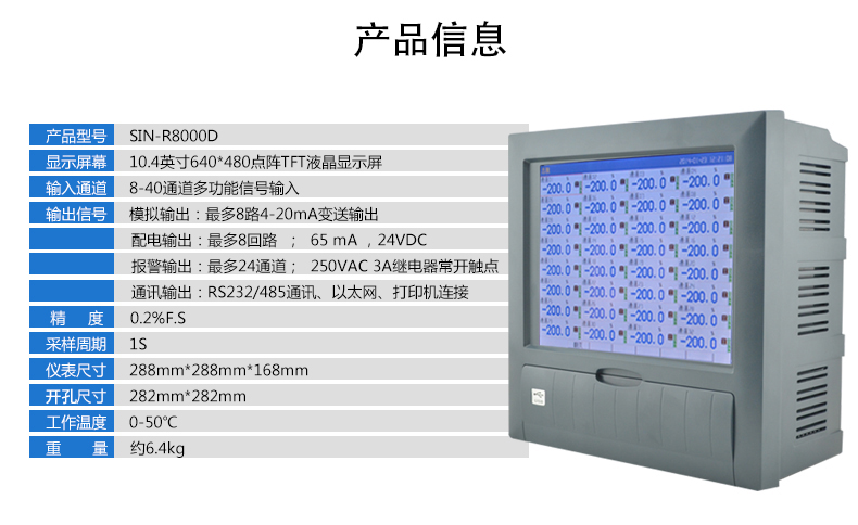 • 聯測_SIN-R8000D_1-40路可選_10.4英寸彩屏_無紙記錄儀_溫度_壓力_多種參數